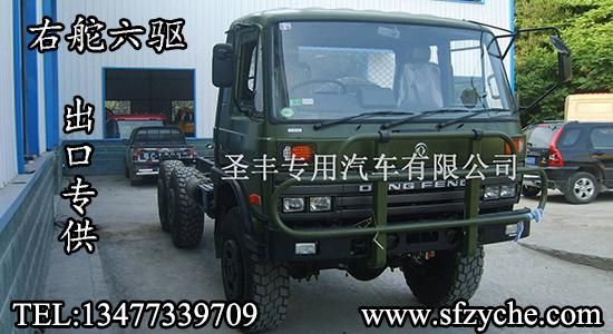 東風右舵出口專供六驅(qū)越野卡車,可在此底盤基礎(chǔ)上改裝右舵越野油罐車,右舵越野灑水車,右舵越野廂式車,右舵越野冷藏車,右舵越野自卸車,右舵越野隨車吊等各種特種作業(yè)專用車型。