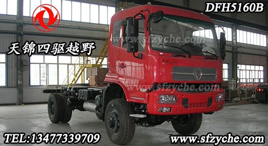 DFH5160B東風天錦四驅越野沙漠車,天錦D530平頭一排半低頂駕駛室,康明斯ISB210 40正宗國四210馬力發(fā)動機,立式、直列、水冷、四沖程、空空中冷、直噴柴油機,軸距4200mm,帶電加熱冷起動裝置,全鋼160L燃油箱,有三合一燃油箱鎖,電子油門踏板,消聲器排氣口向外(側吹),Φ350mm推式膜片彈簧離合器,8檔變速箱,變速箱速比Ⅰ8.12 Ⅱ6.08 Ⅲ4.47 Ⅳ3.31 Ⅴ2.46 Ⅵ1.84 Ⅶ1.35 Ⅷ1.00 RL8.12 RH2.46,分動箱高低檔帶差速鎖 、氣動式換檔操縱,4.5噸前橋鑄造橋殼,驅動轉向橋,輪間差速器鎖,10噸雙后橋輪邊減速,鑄造橋殼,輪間差速器鎖,主減速比5.921,帶ABS。