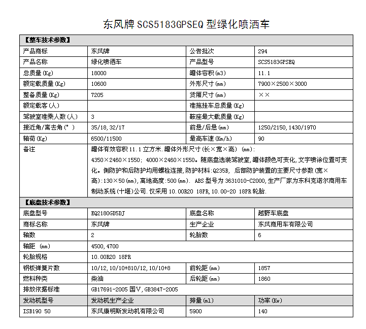 潤(rùn)知星牌SCS5183GPSEQ四驅(qū)越野消防灑水車,東風(fēng)越野四驅(qū)森林消防供水車采用東風(fēng)D913新款駕駛室(可選裝老款153駕駛室),4*4驅(qū)動(dòng),ISB190 50國(guó)五發(fā)動(dòng)機(jī),4500mm/4700mm軸距,東風(fēng)六檔變速箱,10.00R20鋼絲胎,東風(fēng)商用車前后橋,罐體采用優(yōu)質(zhì)碳鋼QB235板材,罐體容積11.1立方,前沖后灑,側(cè)噴,后置工作平臺(tái)帶消防水炮,可選裝消防炮,消防泵等專用消防設(shè)備。主要用途:中國(guó)森林林業(yè)部門(mén)的森林消防滅火供水及利用車載消防泵消防炮進(jìn)行遠(yuǎn)程消滅森林火災(zāi)。