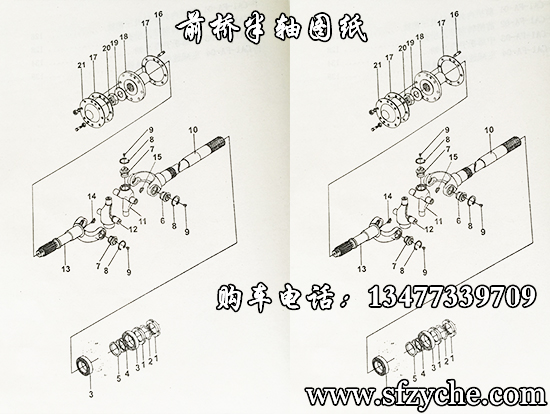 東風(fēng)EQ240尖頭六驅(qū)軍車前橋圖紙,EQ240、EQ2081E、EQ2061E、EQ2082E6D、EQ1093等車型均采用東風(fēng)德納2.8噸級前橋,前橋裝有三肖式等速萬向節(jié),主減速器速比6:35和6:37兩種,老款汽油車型都是6:37齒盆角齒;后期柴油車采用6:35齒盆角齒,輪胎螺絲6孔。下面詳細(xì)提供整根車橋細(xì)節(jié)圖紙: