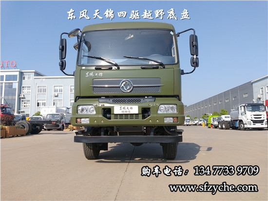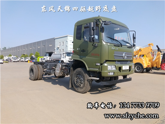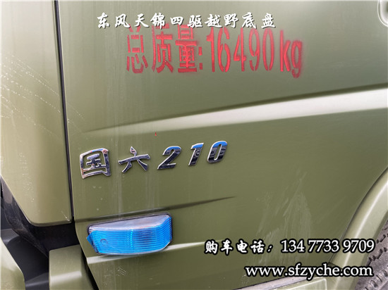 國六排放天錦(4×4)越野底盤,采用DFV2163GP6DJ型國六排放東風(fēng)天錦四驅(qū)越野底盤,東風(fēng)天錦D530一排半駕駛室,4×4驅(qū)動,康明斯B6.2NS6B210國六發(fā)動機210馬力,最大扭矩:850N.m/1100-1700rpm,排量6.2L、韶齒手動六檔變速箱,東風(fēng)德納車橋,前驅(qū)動橋4.5噸,后橋10噸,10.00R20輪胎,軸距4500mm/4700mm,大梁280mm,電動玻璃,方向助力,斷氣剎,ABS,大燈自動調(diào)節(jié),自動調(diào)整臂,選裝原廠空調(diào)。