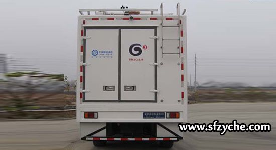 1.隨底盤選裝駕駛室頂部空調(diào);2.車后部加裝后梯,后梯的下半部分可拆卸,車輛行駛時可放置廂內(nèi); 3.主要專用裝置:移動通信基站天線、升降塔;4.專用功能:確保在熱點區(qū)域臨時增加同時提供數(shù)個基站的話務(wù)量支持;5.側(cè)面防護裝置的材質(zhì)為鋁合金,連接方式為螺栓連接;后下部防護裝置的材質(zhì)為Q235,連接方式為螺栓連接,斷面尺寸為100mm×50mm,離地高度為530mm |